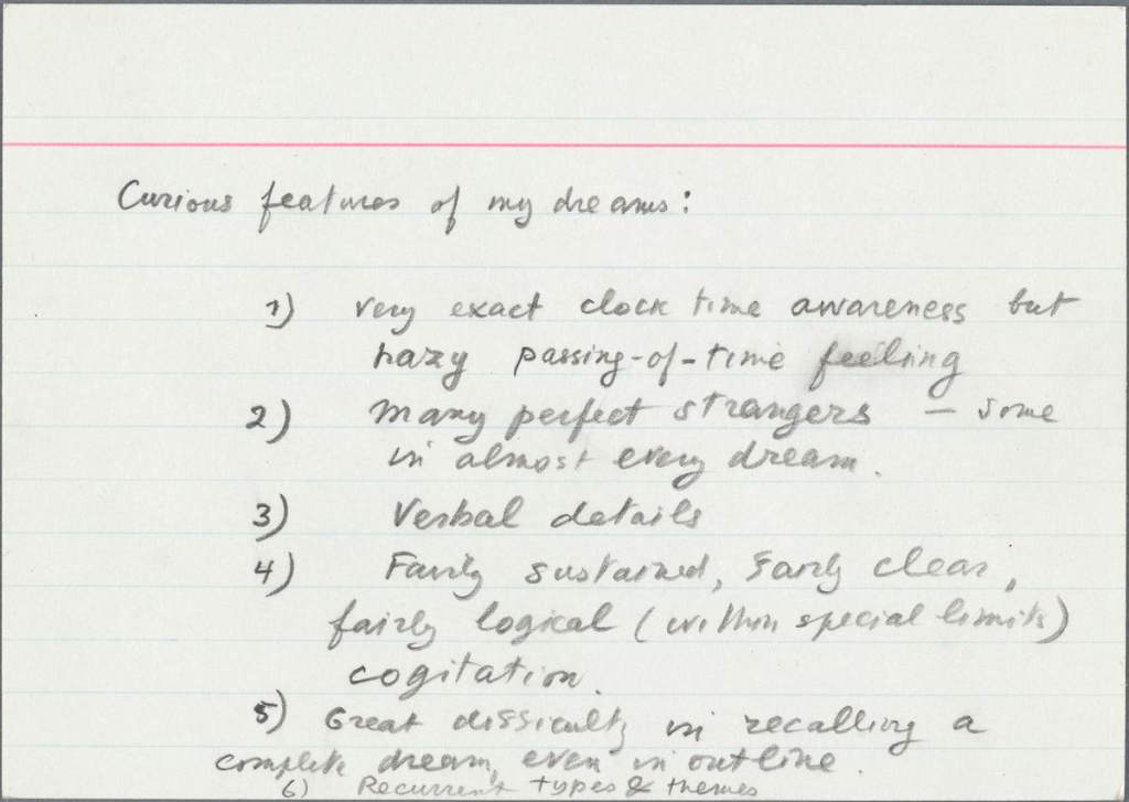 Me llamó la atención el número 5, porque me sucede también y siempre lo he encontrado frustrante. Pero después de pensarlo, ¿no será inadecuado calificar un sueño de “incompleto”? ¿No será una proyección de nuestra representación de lo que debe ser una historia, que no tiene nada que ver con la realidad de los sueños? ¿Quién dice que un sueño tenga que concluir en algo?