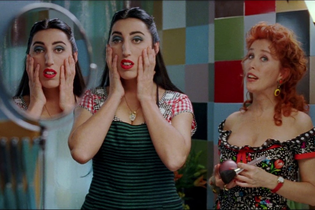 Comentando las películas en diferentes ocasiones descubrí que las historias se mezclan en la cabeza con el tiempo. Gracias a este efecto es posible visualizar fácilmente las marcas distintivas de la obra del director. Las películas de Almodóvar tienen una teatralidad y una artificialidad que es fundamental en el melodrama, y que hereda en parte del cine clásico. Los actores, siempre los mismos, interpretando personajes similares en sus vestuarios llamativos y sus escenografías tan cuidadosamente ornamentadas (no con la elegancia y fastuosidad de Douglas Sirk o Ernst Lubitsch, sino como maquetas o casitas de muñecas kitsch) a través de décadas de películas generan una intertextualidad que obliga a ser consciente de que una está viendo una película, y no cualquiera, sino una de Almodóvar. Si está Antonio Banderas, lo más probable es que interprete a un hombre más o menos desquiciado. Si está Chus Lampreave seguramente sea la madre o suegra del protagonista, o en su defecto el personaje secundario más gracioso de la película. Si está Penélope Cruz será madre, y probablemente se la vea parir. Si están Carmen Maura, Victoria Abril o Marisa Paredes interpretarán a la protagonista almodovariana por excelencia: una mujer que sufre pero se las arregla, y haciendo de tripas corazón enfrenta su dolor y su vida con dignidad y astucia.