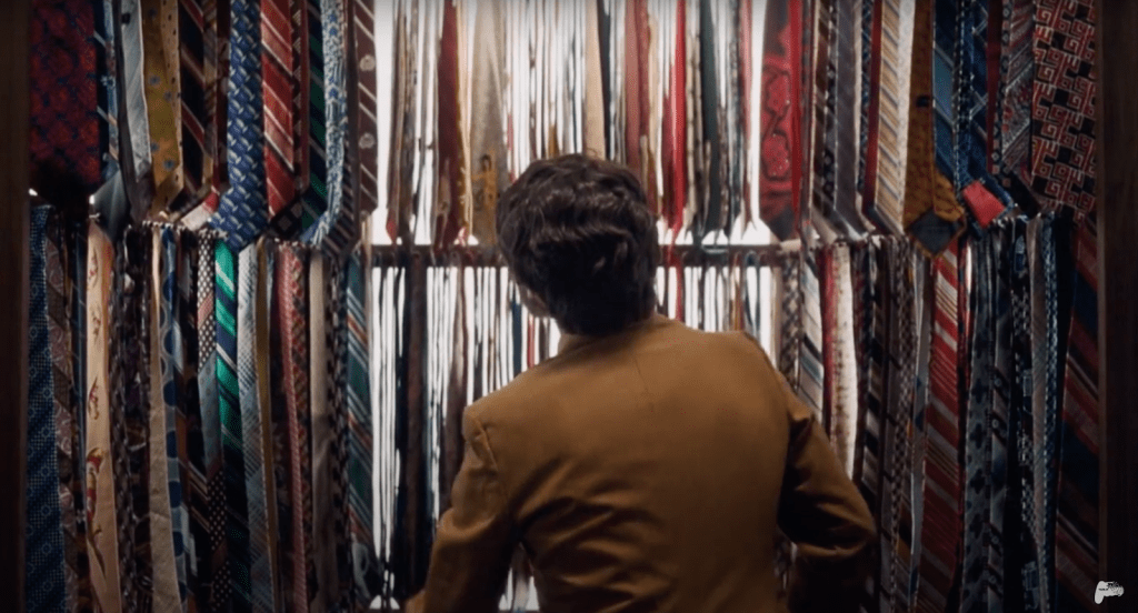 Vestiariamente hablando, notemos por ejemplo la doble presencia de colecciones de corbatas en sus films. La primera, sobria y repetitiva, en The Royal Tenenbaums; la segunda, colorida y osada, en Inherent Vice, donde Doc Sportello admira la colección exótica de Mickey Wolfmann.7